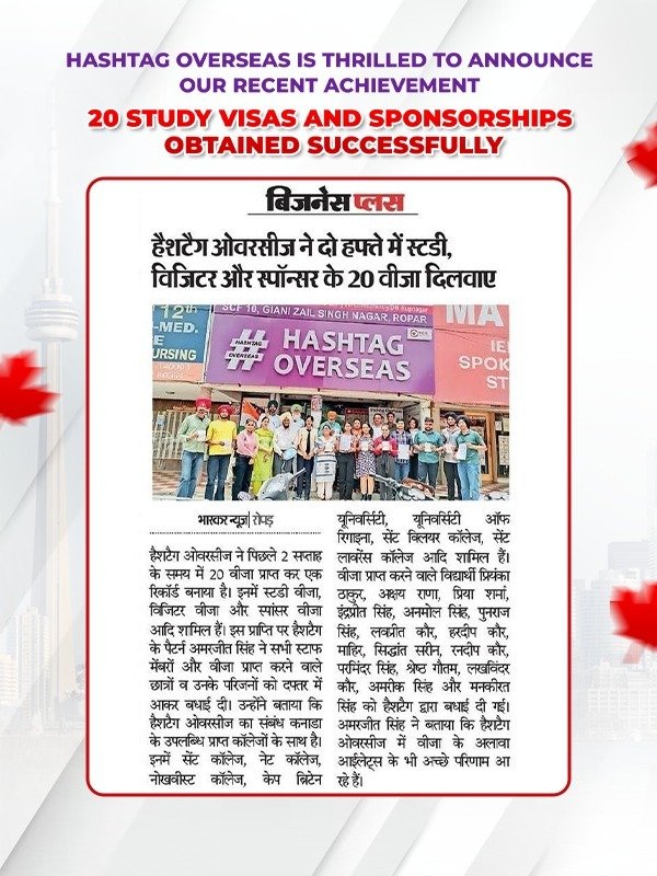 HASHTAG OVERSEAS is widely recognized as the top-notch IELTS institute in Chandigarh and Rupnagar. We pride ourselves on being the premier visa consultancy in Chandigarh, situated in the thriving region of North India. With our exceptional services and dedicated team, we are confident in our ability to help you achieve your goals. Our goal is to empower students and provide them with outstanding English education and visa assistance. We strive for excellence in everything we do and are dedicated to helping students achieve their dreams of studying abroad. With our expertise and commitment, we believe that nothing is beyond reach. Join us on this incredible journey to a brighter future!